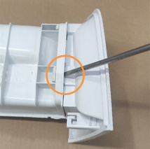 - Pour retirer le tiroir de la poignée, placez un tournevis à tête plate dans la zone où se trouve la pince.