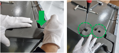 Plaats het deksel van het bovenscharnier terug en schroef het vast (2 stuks).